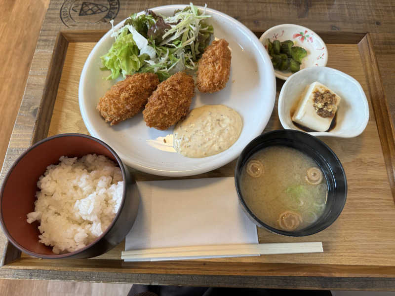 に、デカラを添えて。牡蠣が大きくて満足感大有り🥰