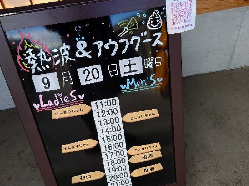 今日は13:00からてんまりちゃんのアウフグースがあったんですが、予約制で既にいっぱいで受けれませんでした。残念!ということで、この後はあなぐらサウナを2セットし、露天風呂で温まりながら仮装したメイド風のてんまりちゃんを見送って終了です。