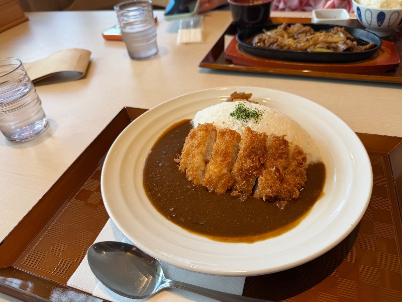 オロポもセットで。 サウナ後のカレーは最強です。 妻が食べたカレーうどんも負けじと美味でした👍
