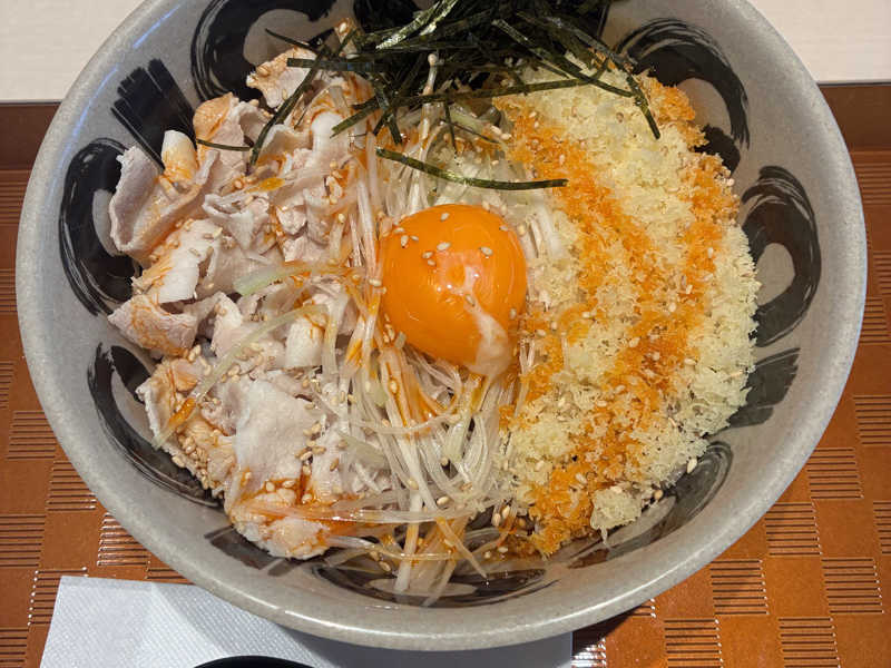 ラー油が効いてて結構美味しいかも〜 麺が蕎麦麺だから和風まぜそばって感じ…?
