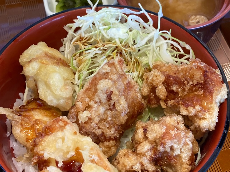 鶏天と鶏唐揚を一度に味わえる贅沢よ!