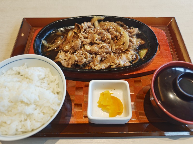 鉄板じゃなく皿だったら、バラ焼きの汁ご飯にぶっかけてガッツいてました😁