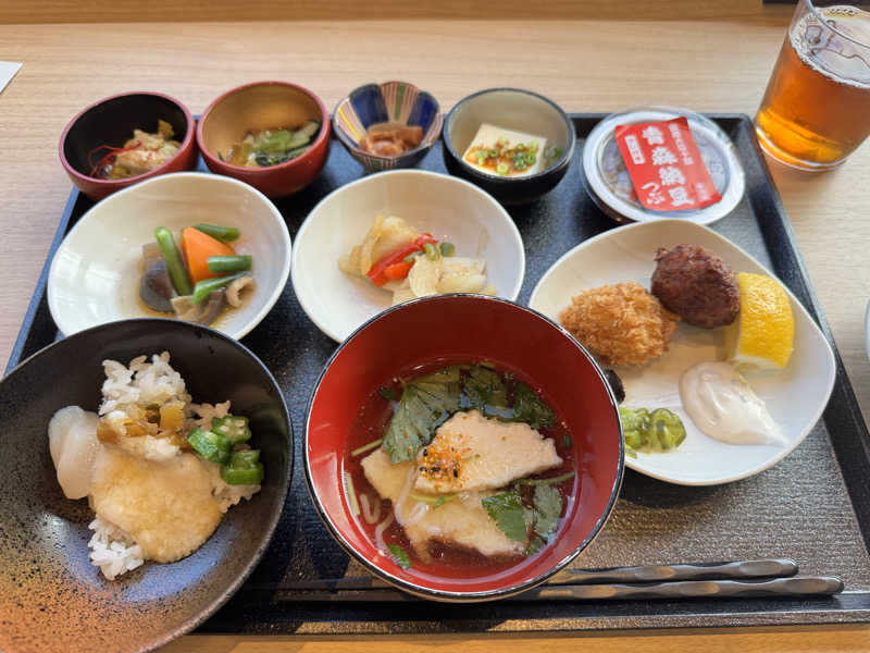 朝食価格は豪気な2500円コースも前日の本八戸とほぼ同じ。スタッフのおばちゃんおすすめの地場の納豆は大粒でやたらと臭く、漂白された都市との違いをまざまざと見せつけられた気分でした。