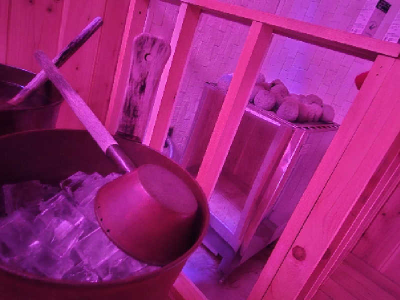 店が用意してくれたバケツ1杯分の氷を使って精油入れてアロマサウナ室をたんのー!!!