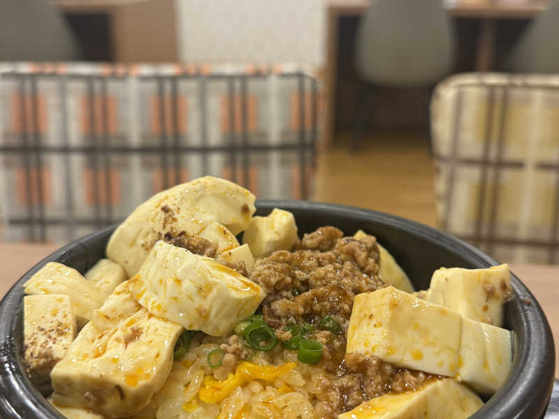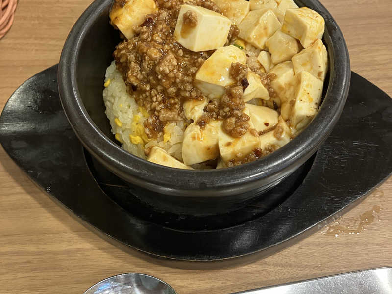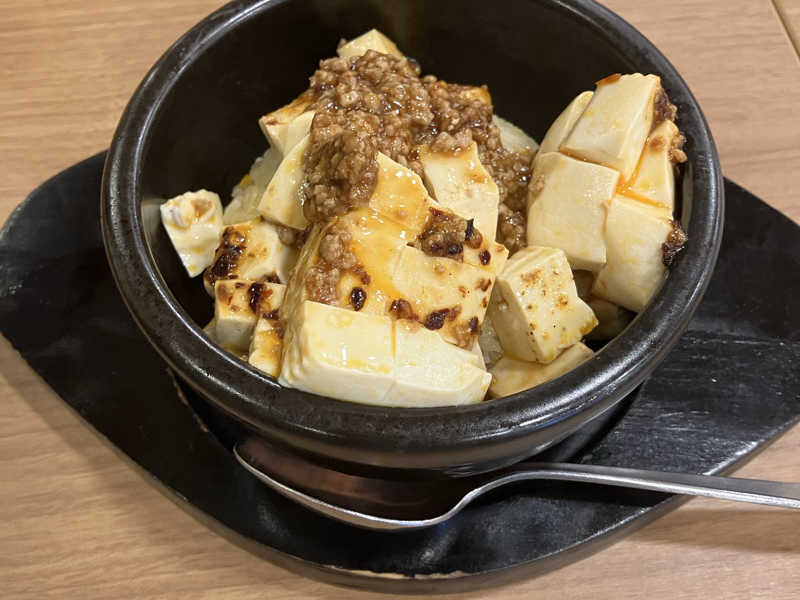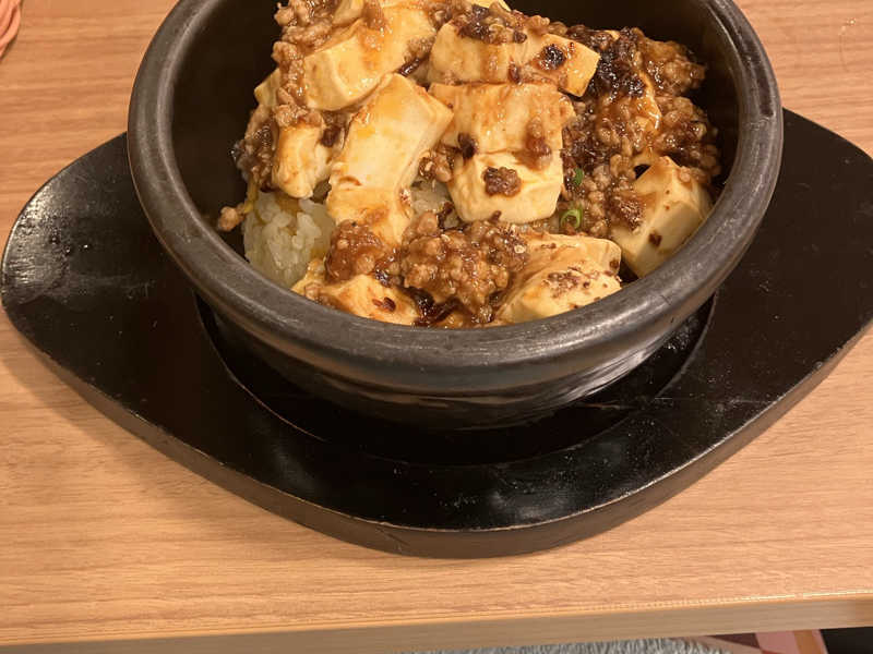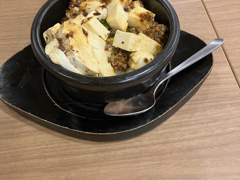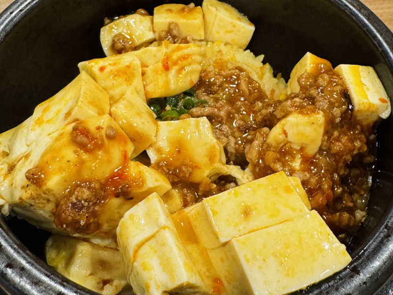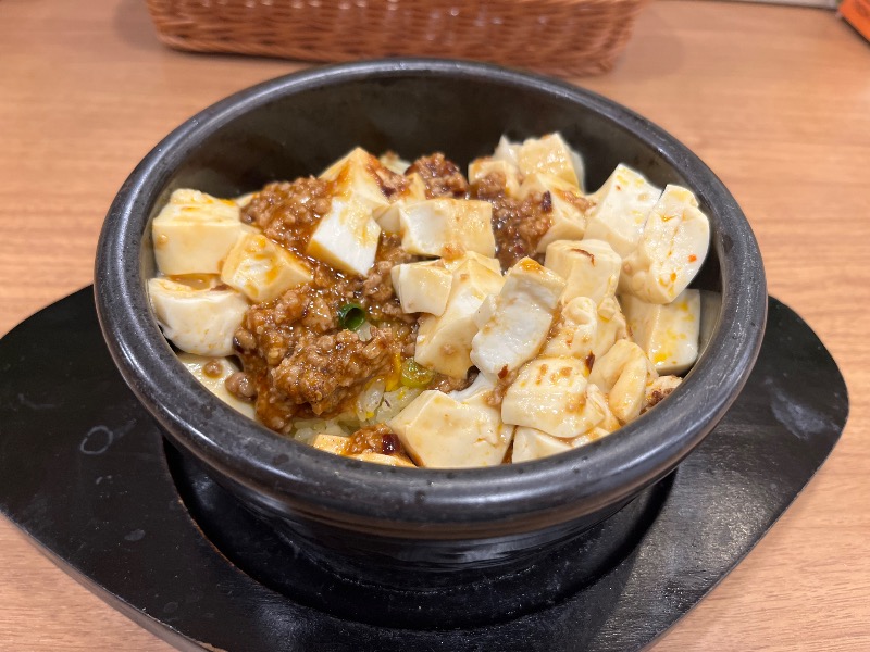 店員さんが目の前で麻婆豆腐ロウリュをしてくれ、熱々で最高。次は1辛にしてみたい