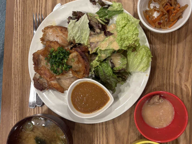 味噌汁がとっても体にしみた🎶 鶏肉もとってもおいしかったです(´∀`)