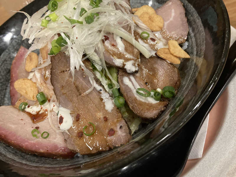 まず運ばれてきて、丼なのに米どこ?ってレベルで肉まみれ。どちらの肉も美味しくて分量もすごくて満足。