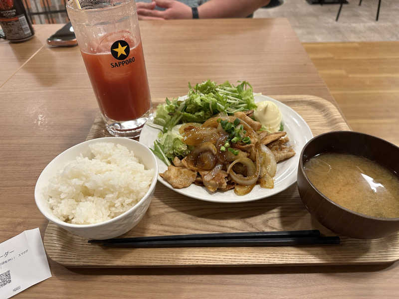 生姜焼き&🍚 🍅炭酸