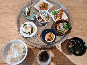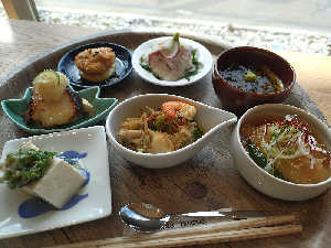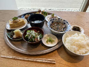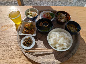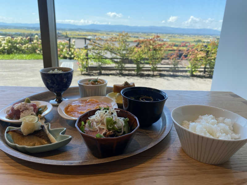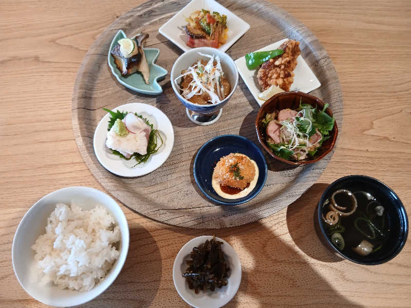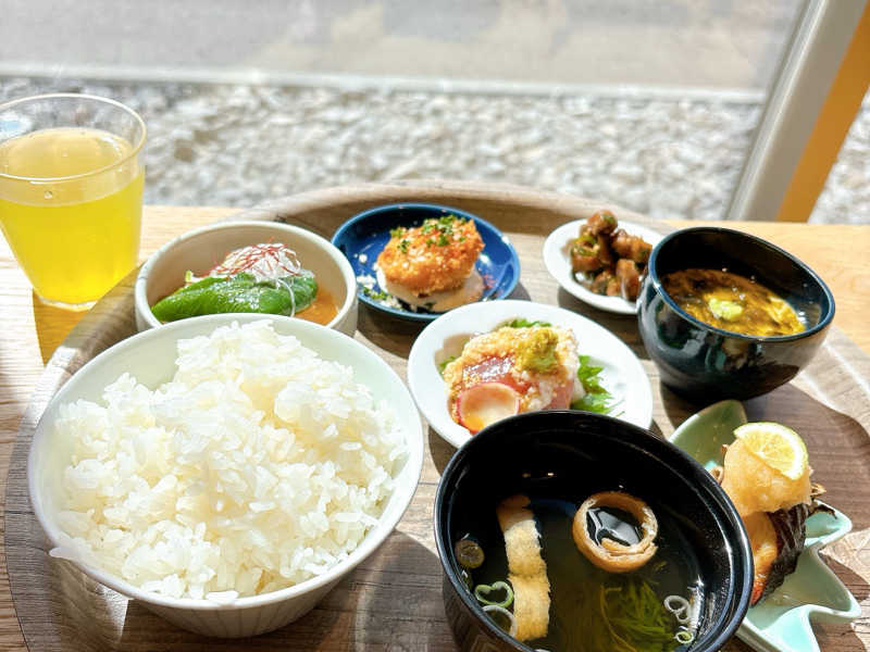 すきな小鉢7個自由にえらぶスタイル♩ ごはんはおかわり自由!食べ応えあり 景色もよくて癒しの時間〜