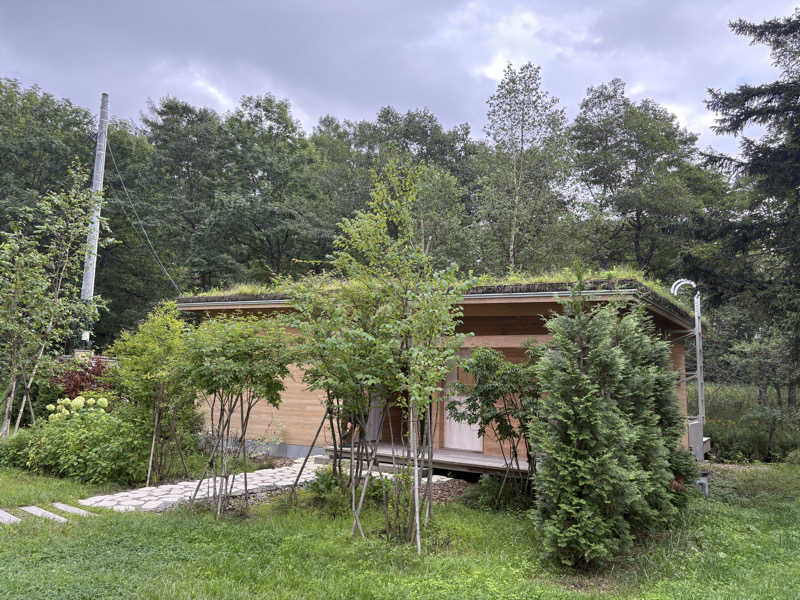 建物の上に芝が貼ってあるなんて、サウナ関連の本でしか見た事なかったもの。