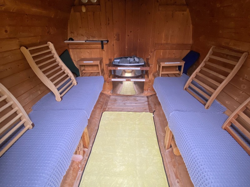バレルサウナ人生初なんですが、想像していた通りロウリュすると背中の方からも熱をすごく感じ良い熱さに^_^ロウリュ後の湿度がたまらんしっくりきて何度も入れちゃう💦汗だくになって水風呂にドボン💦🛀