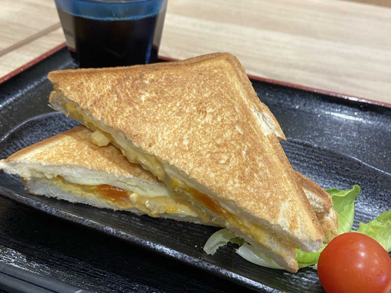 やっぱり朝はパン🥪 パンはサクサクでタルタルも旨い😋 和食堂の朝メニューはどれも美味👍