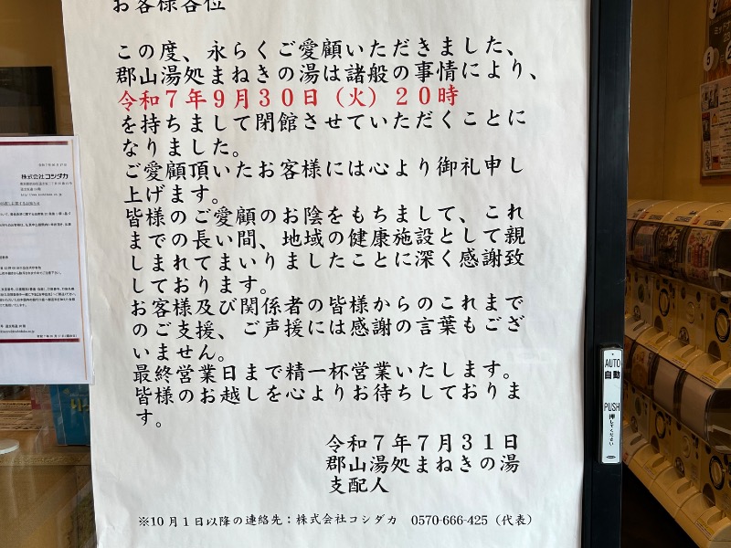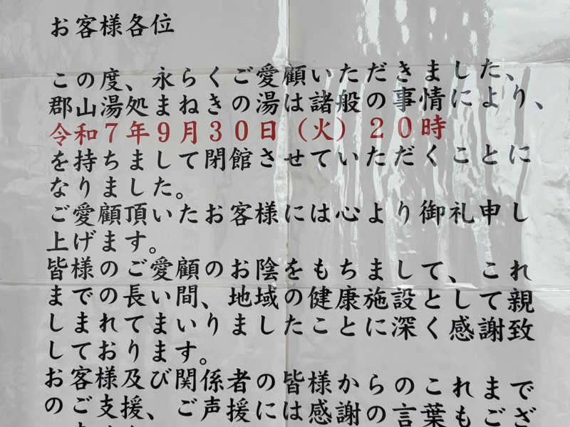 暫しの別れ…😭を告げにまねきの湯に来てみました