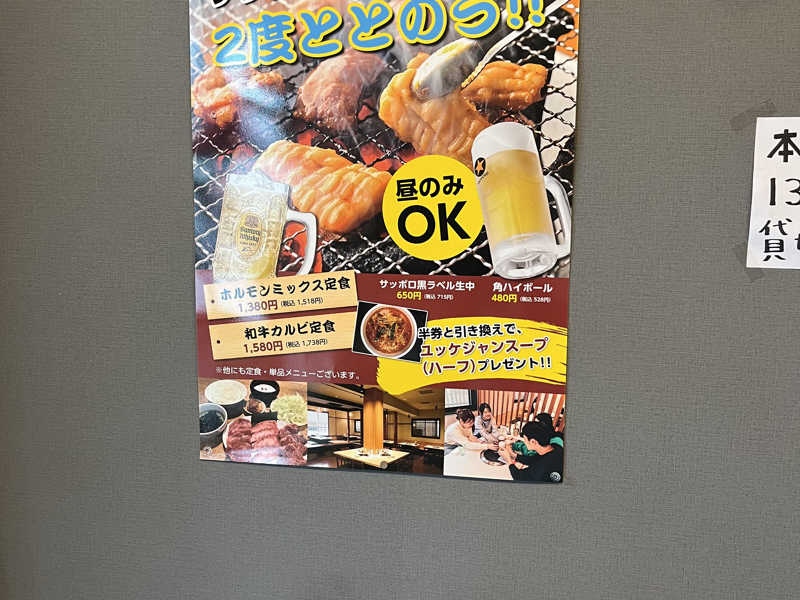 店名がホルモンなので、やっぱり頼んでしまった。 午前サウナでランチ焼肉のゴールデンコンビ。