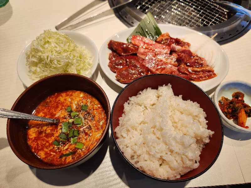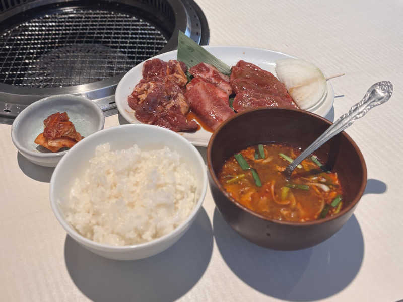 サウナの半券でいただけるユッケジャンスープ、オススメのギャラやジンギスカンも美味しかったー