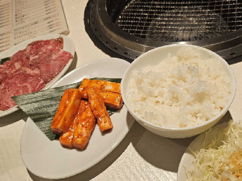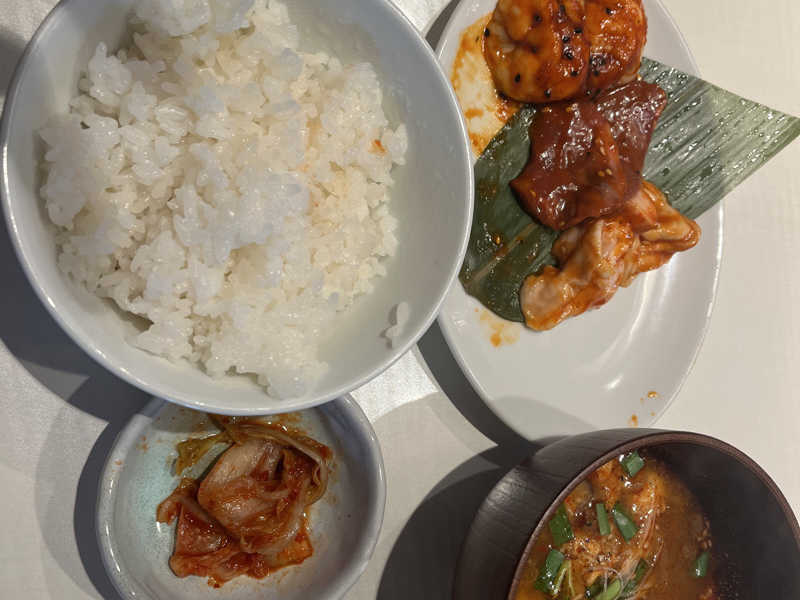 焼き奉行が施してくれる絶妙ロ〜ストのお肉達♪サウナ後特典ス〜プのマイルドな旨甘辛さでご飯無限イケる♡