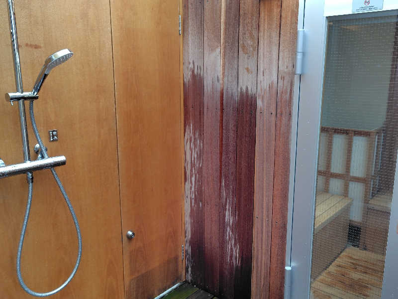 水風呂は屋外で、水は頭上から降ってくる