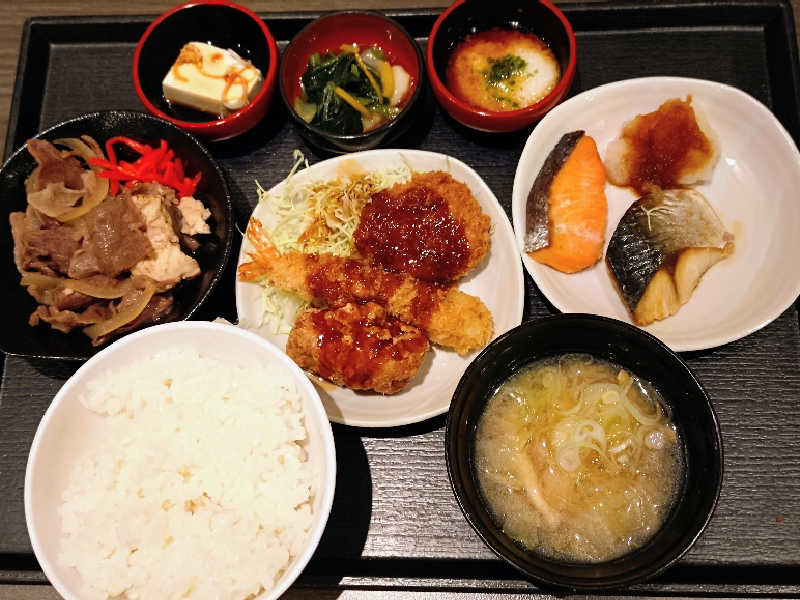福島名物を中心にチョイス😄 ソースカツ丼も牛丼も美味しかった😋 ドーミーインの朝食はいいですね❗️