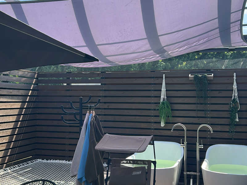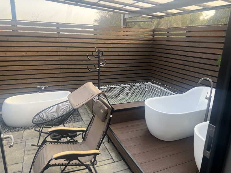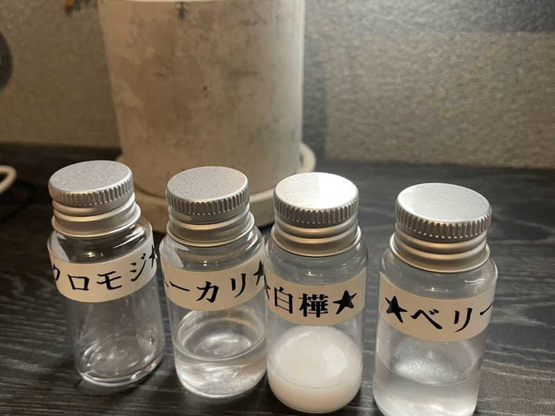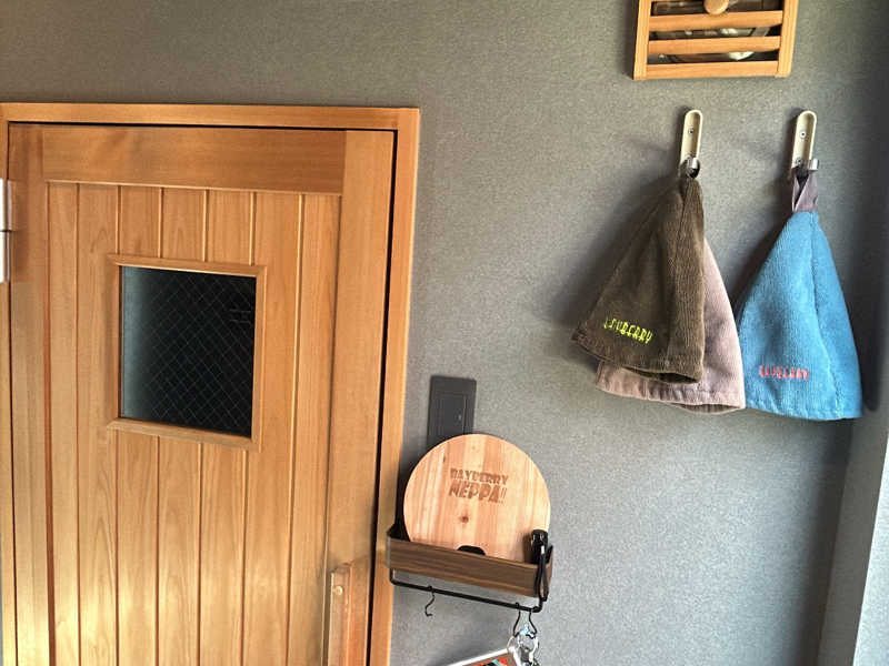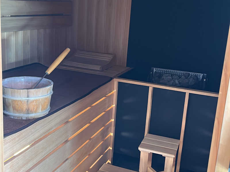 ちょっと狭めのシャワー室で洗体!そんなのサウナ目的の僕には関係ない!天然ミネラルシリカを含んだ天然温泉水のお風呂で下茹で♨️いざ聖域へ✨サ室ではセルフロウリュウでき、アロマオイル4種類を自由に使って良い✨初日は白樺で1セット、クロモジで2セット。次の日の朝ウナではクロモジで1セット、ユーカリで1セット、持参のホワイトリリーで1セット、白樺で1セットでした🥴ロウリュウはサ室が狭いので1掛けで充分な熱量💦サ室の温度が最初入った時80℃だった事もあり、一気に3掛けしてしまい殺人クラスの猛烈な熱圧に襲われ速攻退室😆3分おきくらいに1掛けするのが僕にはベストでした!3掛け目くらいには体感100℃近くはあったと思います✨備え付けのカワイイ熱波うちわでパタパタ!ハンドタオルでセルフアウフグースしたり!寝転んでサウナ入ったり!