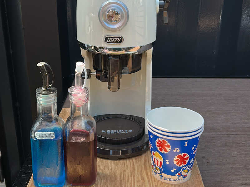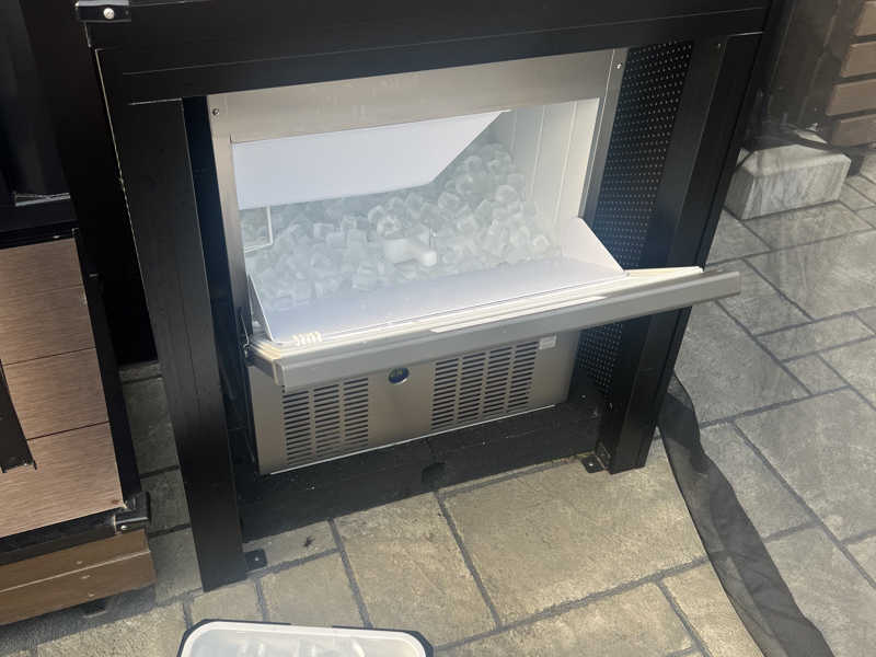 外気浴スペースに製氷機があって、ガンガン氷投入www