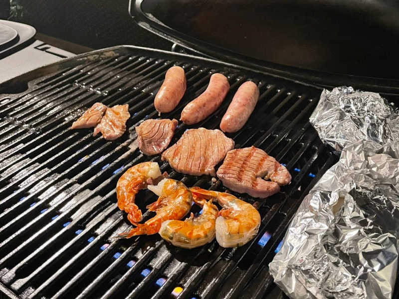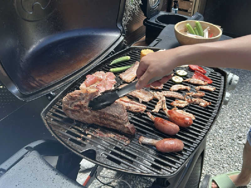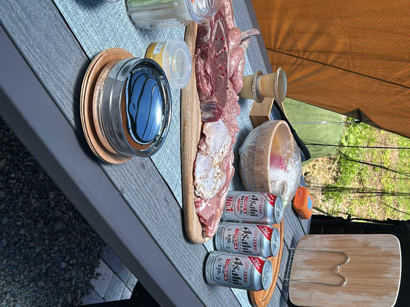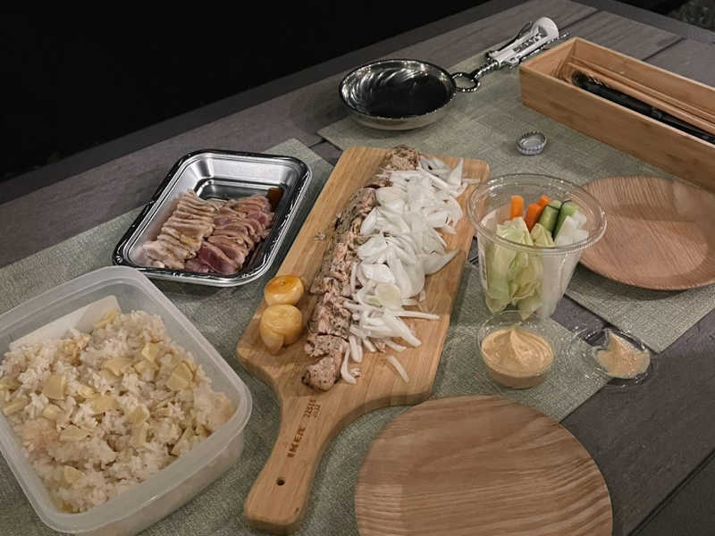 オプションでレンタルしていたバーベキュースペース(3,850円)が21時30分までなので、とりあえず腹ごしらえ!以降は隣接するサウナの整い場にテーブルと椅子があり、そこに場所を移して飲み直し🍺21時30分以降はサイレントタイムとなっているが、会話程度なら👌備え付けのBluetoothスピーカーも音量小さければ👌そんなもんだからなんだかんだでサウナにインしたのは23時過ぎ💦