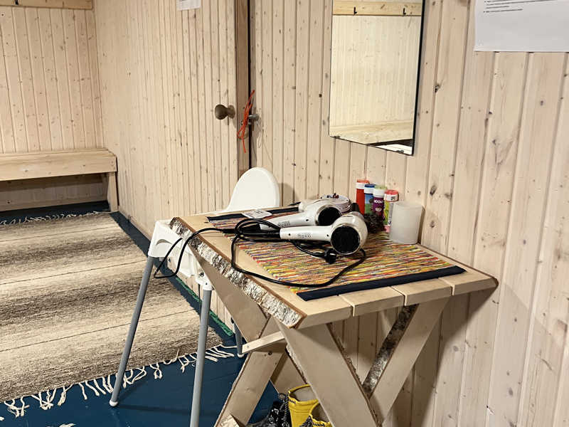 シャワーブースはなく、一部サウナ室前に用意されたお湯や水で身を清める原始的な体験。