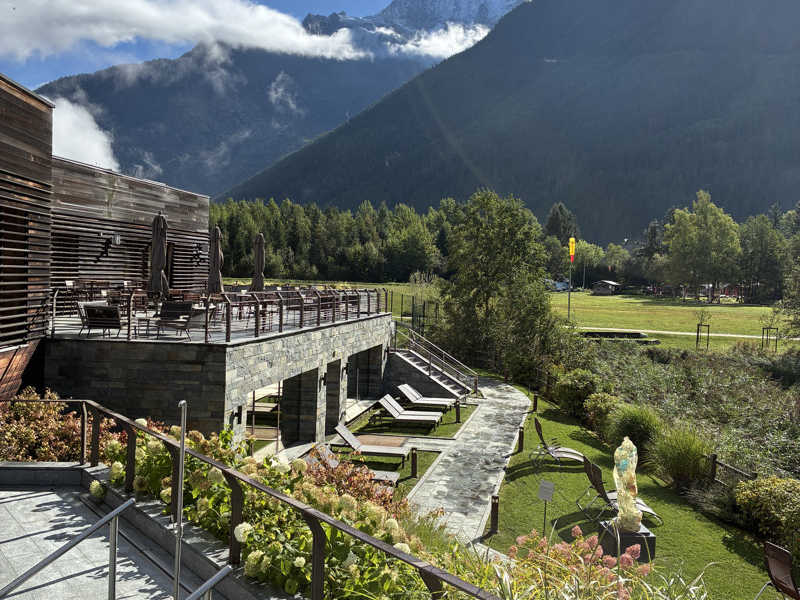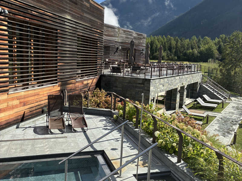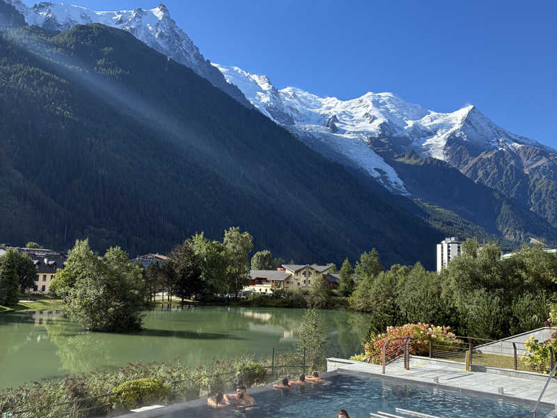 そして名峰モンブランと青い空を見上げてのインフィニティチェアでととのい。寒くなれば多彩なテーマのあるさまざまなととのいルームへ。
