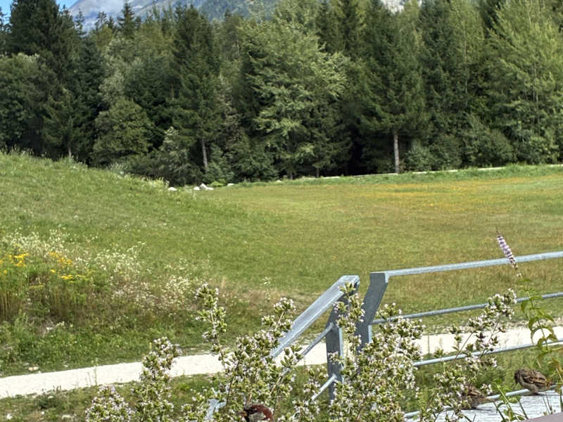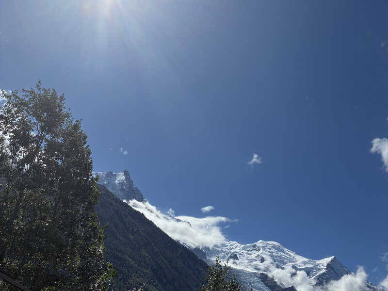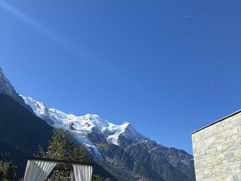 予約したウェルネスランチはメニューは変わらないが12€も値上がり。だがそれを理由に食べない選択はない。少食でも満足できる安定の品揃え。外のテラスでモンブランや山々、隣の降機場に降りてくるパラグライダーを見ながらのんびりと食べる、そのシチュエーションに価値がある。