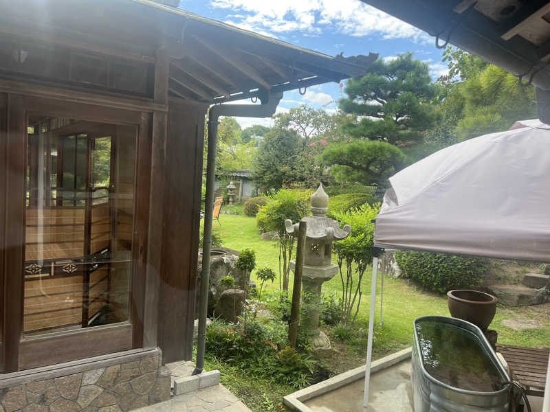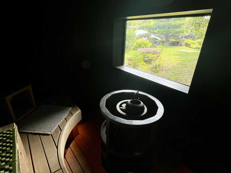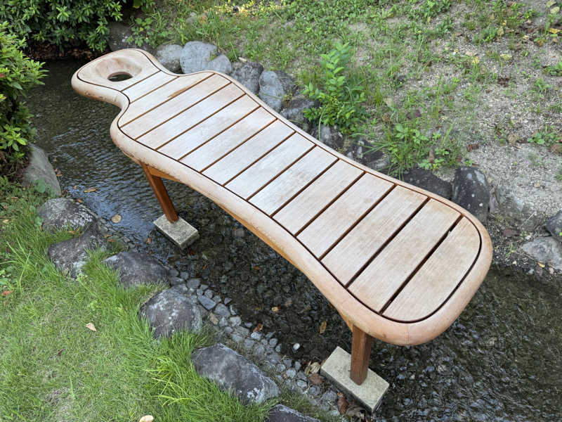 ここにしかないサ活。これだから、一棟貸サウナの探索はやめられない。庭園を観ながらのサウナで好きなBGMをかける。お茶を板にすべらせるロウリュとサウナストーンの上に置いてある急須にミントをいれて、そこに水をそそいで溢れる水でのロウリュとふたパターン楽しめる。なんだそのロウリュと思われるだろうが、事実だから仕方がない。水風呂の傍らにはピンクの花が咲き、小さな川の上にある横になれるマッサージ用の長椅子にうつぶせになり、川の流れを眺める。