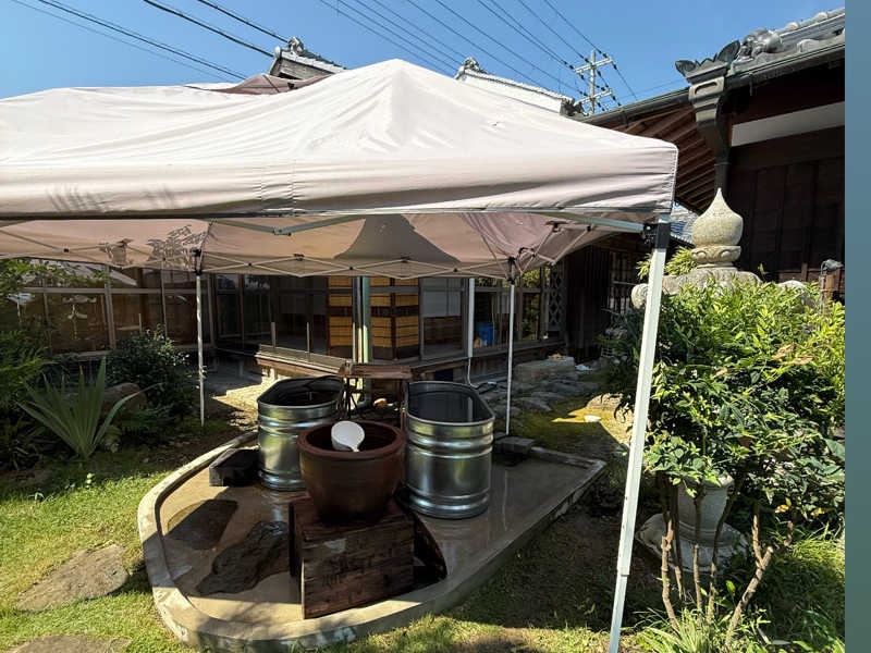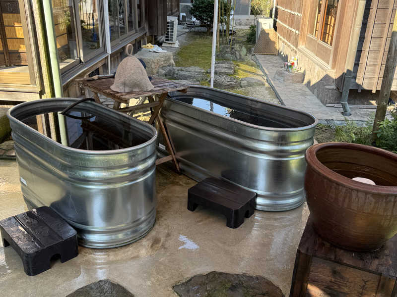 昔の弁当箱みたいな大小の水風呂がそれぞれおいてあり、とっても気持ちよい。