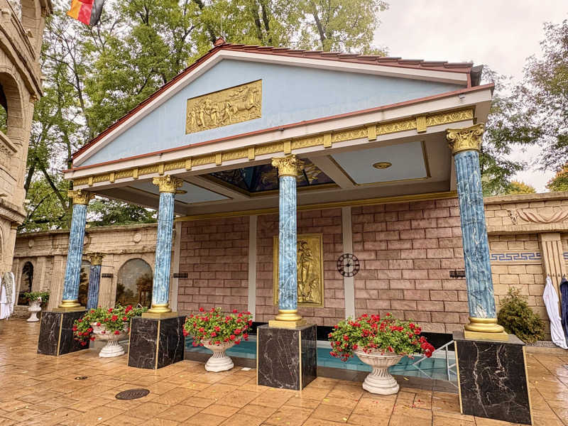 目的地につくとそこには立派な噴水とローマ調の建物が。ホテルみたいだなと思いながら受付に行くと本当にそこはホテルで、サウナは入り口別だよといわれそそくさと移動。