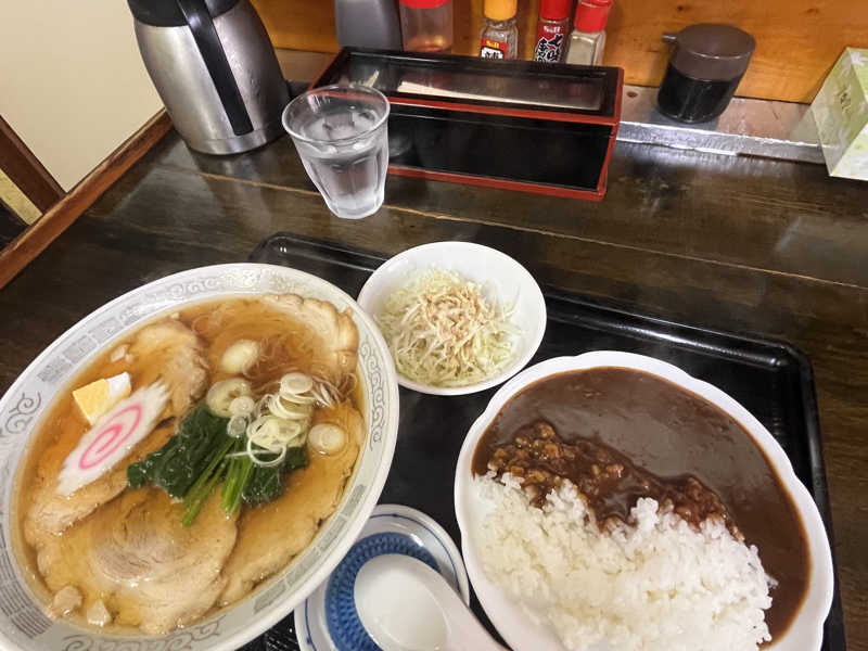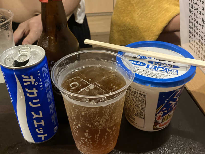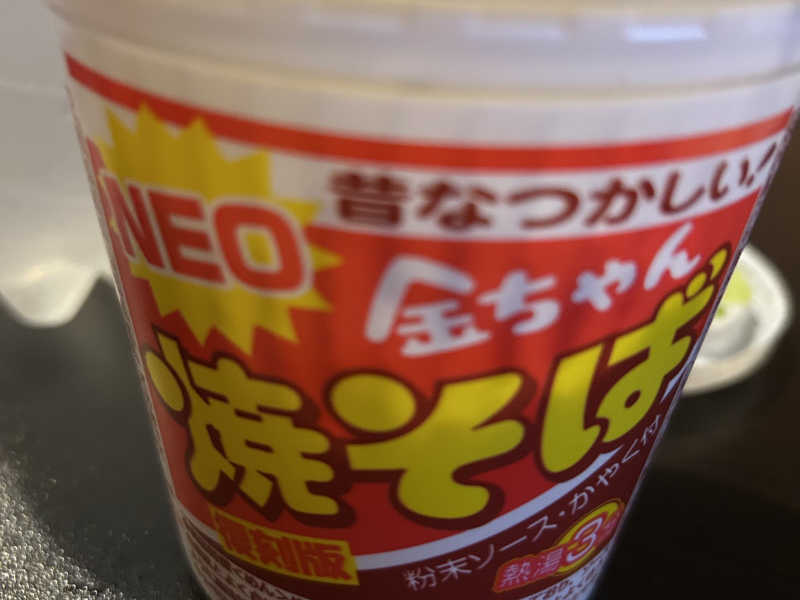 脱衣所でカップ麺にお湯を入れ、カウンター横一列で焼きそばを食うという、初めてすぎる体験