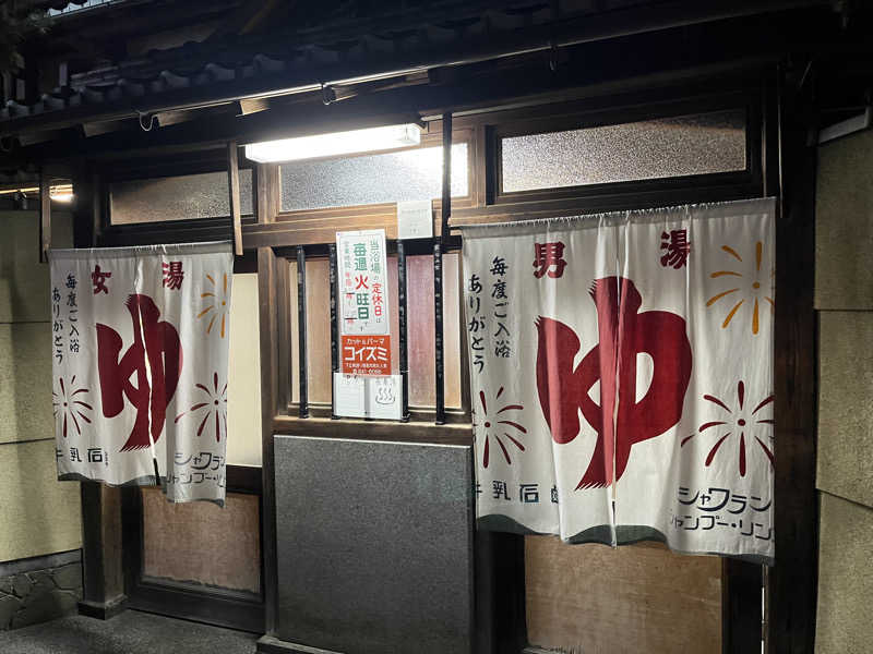 仕事終わった!チョコザップした!明日は休みだ!ひとっ風呂浴びよう!9月末で有効期限の切れる入浴回数券を消化すべく、今日は初めて長者湯に行きました。小さな銭湯ですが、唐破風の入り口、中庭の池に泳ぐ鯉、欄間の彫刻など実に趣深い造りです。薪で湯を沸かしておられるので、外にはたくさんの廃材が置いてありました。古い建物と反対に浴室はピカピカです。サウナも最近になって設置されたそうです。地下水を汲み上げた水風呂がめちゃくちゃ気持ちいい!地元の方の社交場として現役で機能していて活気に満ちていました。サウナが3〜4人で満員なので、あまりゆっくり入れないのが玉に瑕ですが、気持ちいいお風呂体験でした^_^ さあ回数券の残りは6枚です。無事に使い切れるでしょうか?