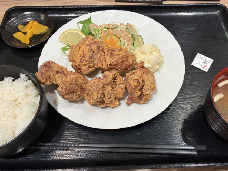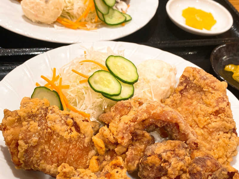 唐揚げ大きくてボリューミー🍗 ポテサラうれしい!