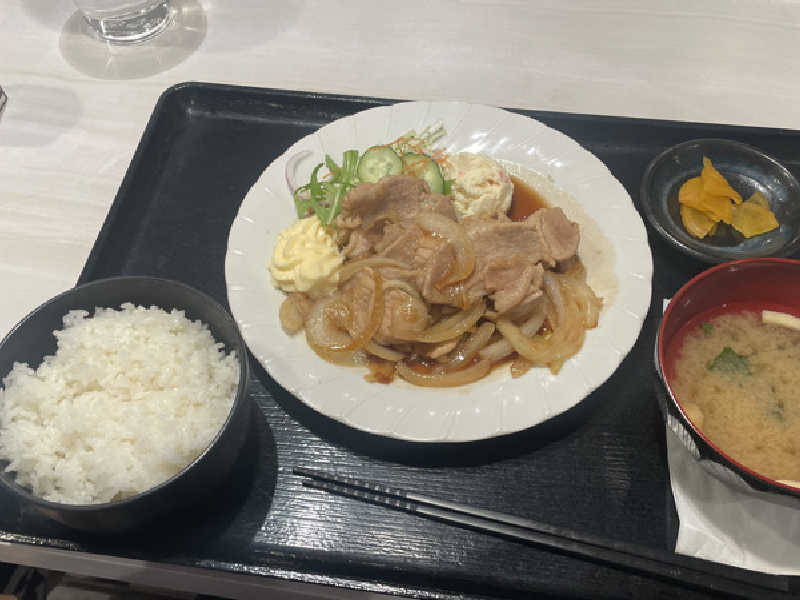 サウナの日限定ワンコインランチ 具沢山豚汁でボリューム満点 これでワンコインは安いし美味しい