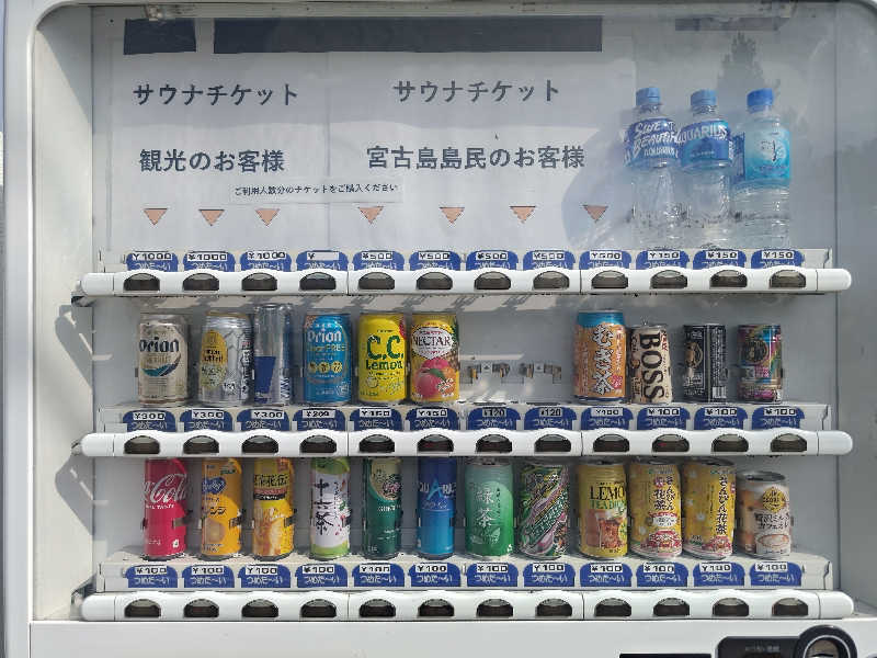 外の自販機でチケット代わりの水購入、それからサウナ、水風呂の準備です!