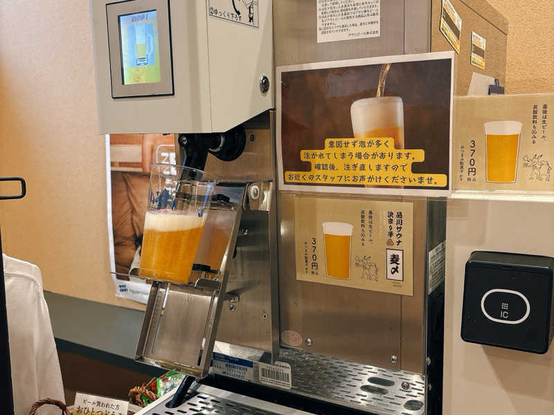 サウナ後0秒生ビール! 税込¥370!小袋おつまみ付き!
