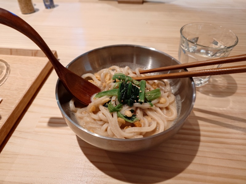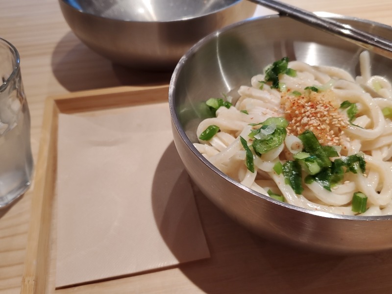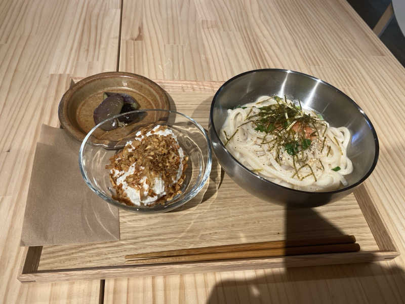 うどんのコシがしっかりあり旨。 トッピングの揚げナスも絶品。 ポテサラも止まらない美味しさ。