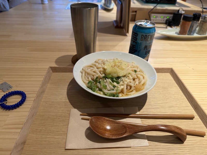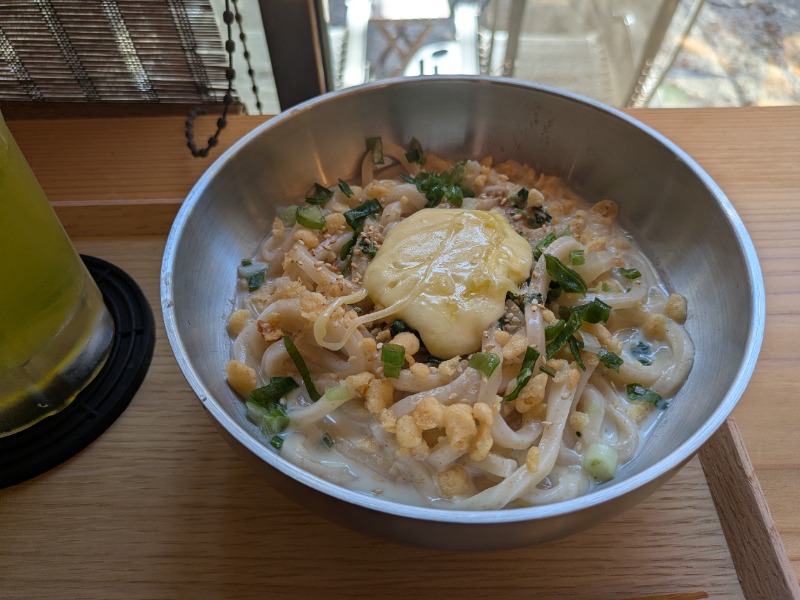 油そばみたいな汁なしうどん。生姜たっぷりでおいしかったです。
