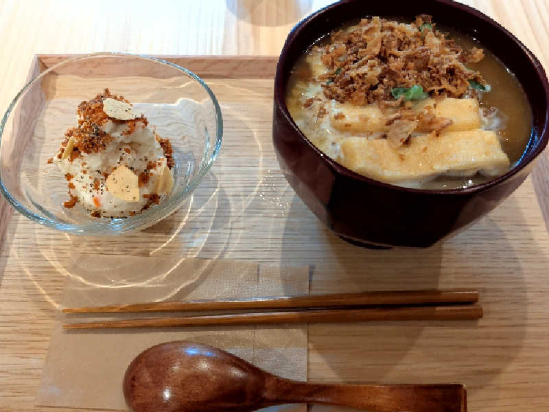 新メニューだったので、揚げナストッピングで頂きました サウナ後のお腹に優しいね