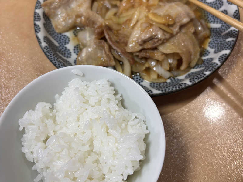 帰宅後の夕飯。サウナ後の、とても良いタイミングで生姜焼きだった。