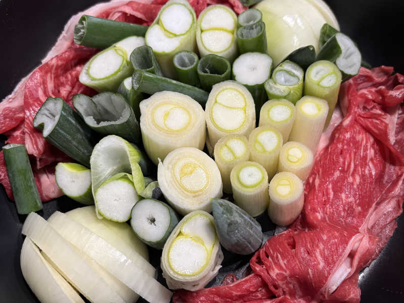 群馬県で購入してきた、下仁田ネギをすき焼きで!トロトロの激うま。