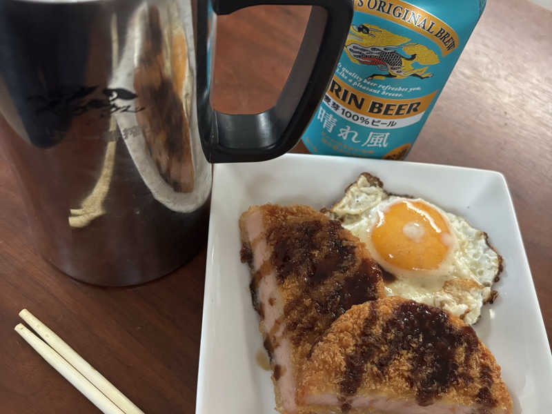 目玉焼きとハムカツを添えて 今日はとことん飲む