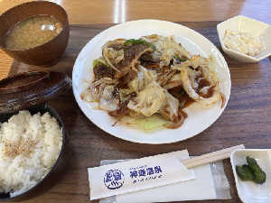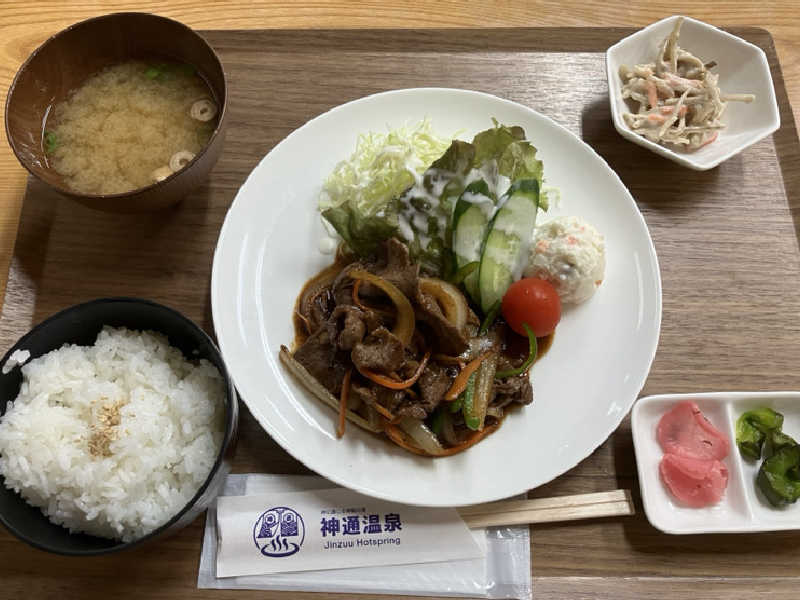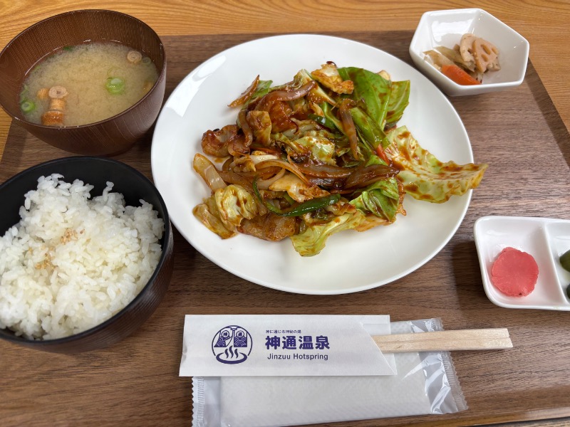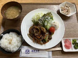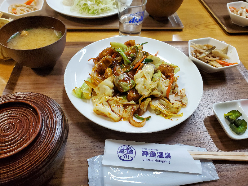 やさしめの味付けでしっかりウマい。付け合わせのサラダのフレッシュ感も堪らない。