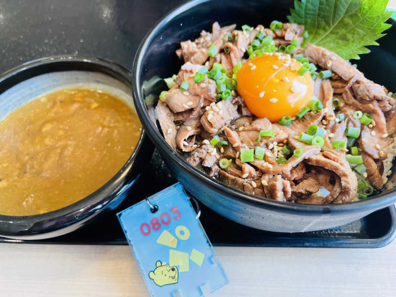 ローストビーフユッケ丼を3分の1食べて、残ったご飯に牛すじカレーをちょい足し。※ご飯大盛り必須👍