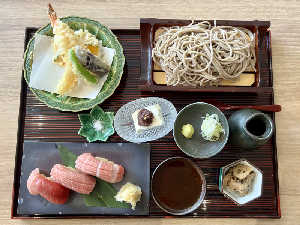 「かき揚げざるそば」を十割そばに変更はできなさそうなので、単品で旬の天ぷら盛り合わせを頼みました
