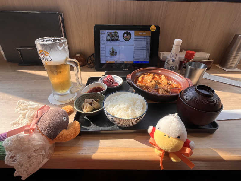 サ活飯ということ。 麻辣油で追い討ち🔥 辛くて美味しくて最高のサ活飯! ビールも美味い!