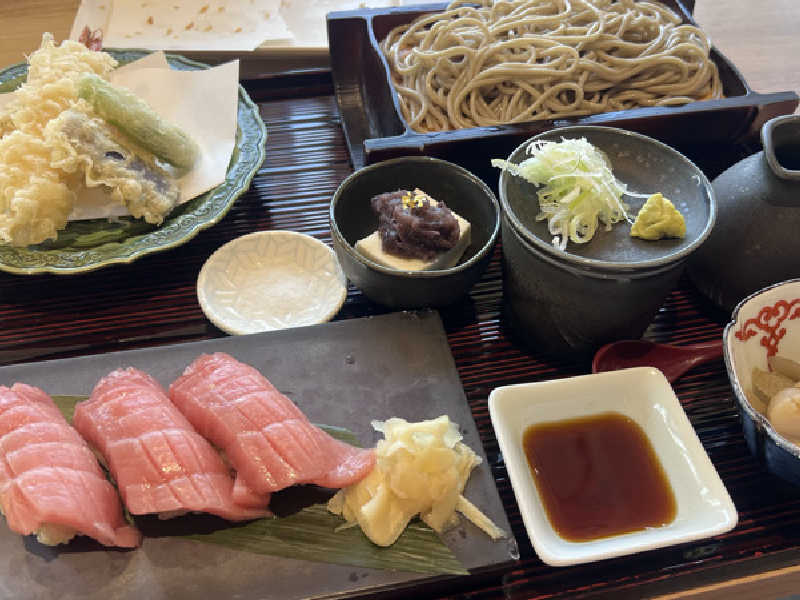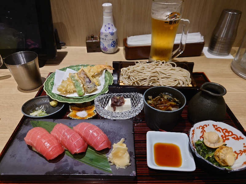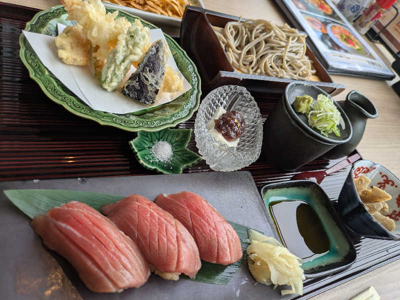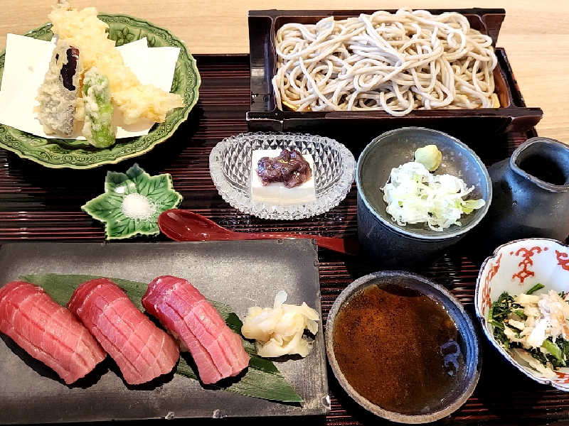 まぐろの握りがヤバすぎ🤤🤤🤤天ぷらサクサク!蕎麦も丸くて珍しくて好き♡