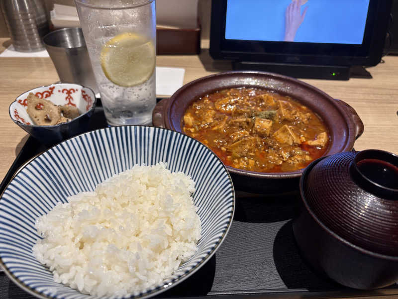 アツアツグツグツの麻婆豆腐に麻辣油をかけて、ビジュ最高✨ そこそこ辛いけど美味しくて止まらなかった😋