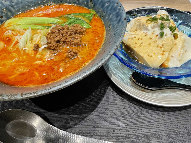 ピリ辛の担々麺にマイルドな豆腐。最近少し食べすぎな感じもするのでボリュームも控えめに。